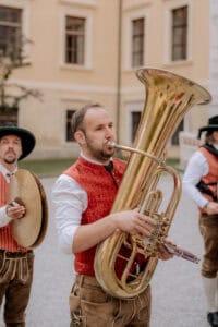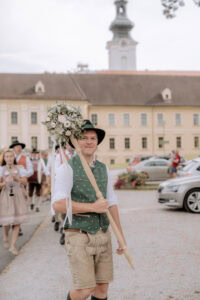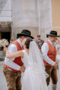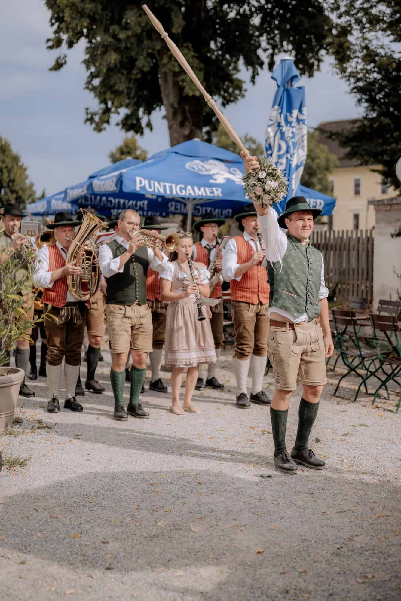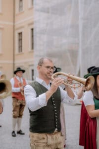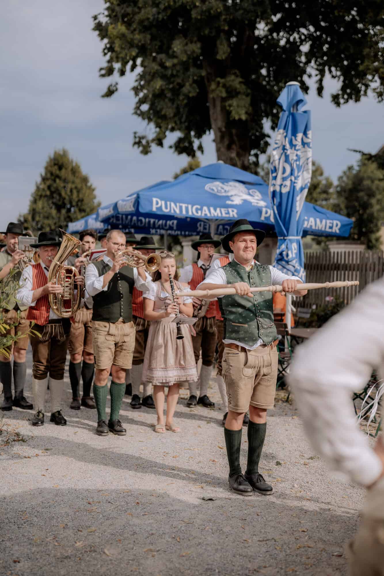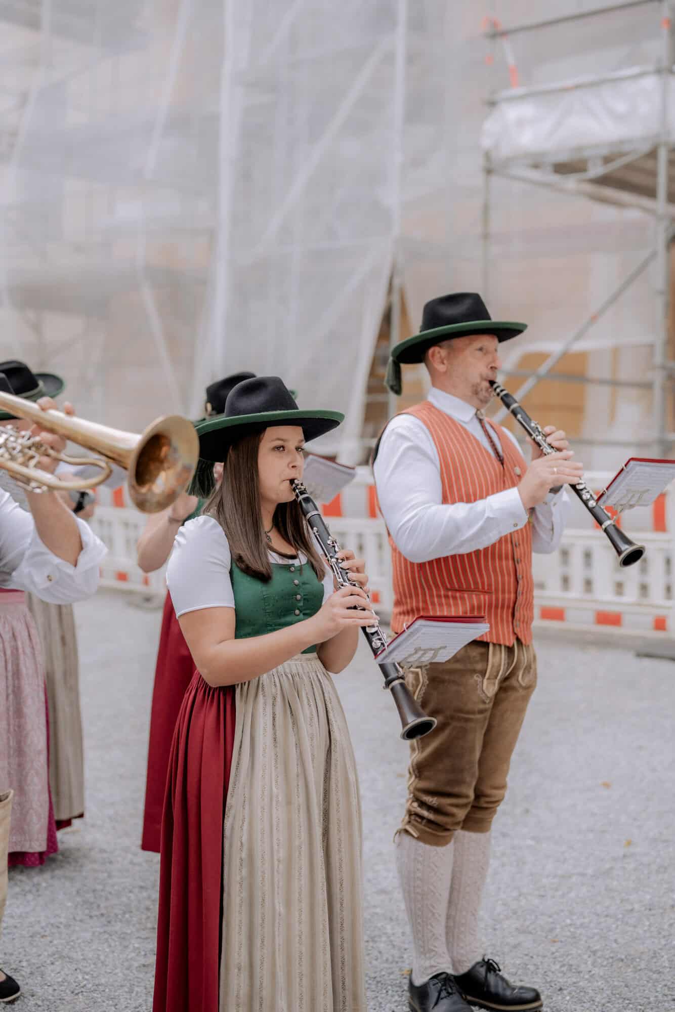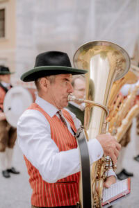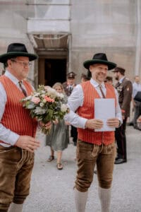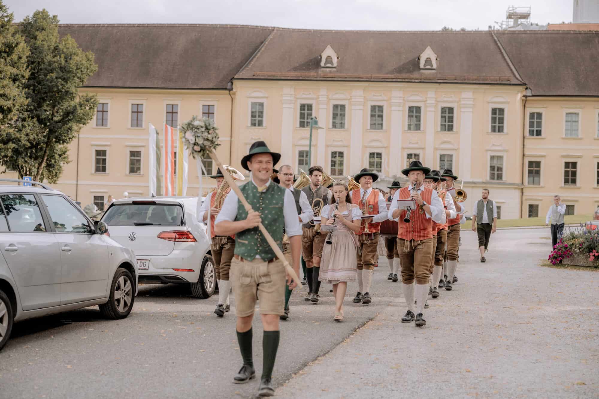 Am 16. August 2025 gaben sich Elisabeth und Mario in der Stiftskirche Rein das Jawort. Mario ist seit vielen Jahren aktiver Trompeter der Marktmusikkapelle sowie in der Administration engagiert. Zu Ehren des Brautpaares spielte die MMK vor der Kirche auf und gratulierte musikalisch zu diesem besonderen Anlass. Beim Abmarsch zeigte sich, dass unser Stabführer auch mit einem Brautstrauß sehr gut den Takt angeben kann. Wir wünschen Elisabeth und Mario alles erdenklich Gute für ihre gemeinsame Zukunft!