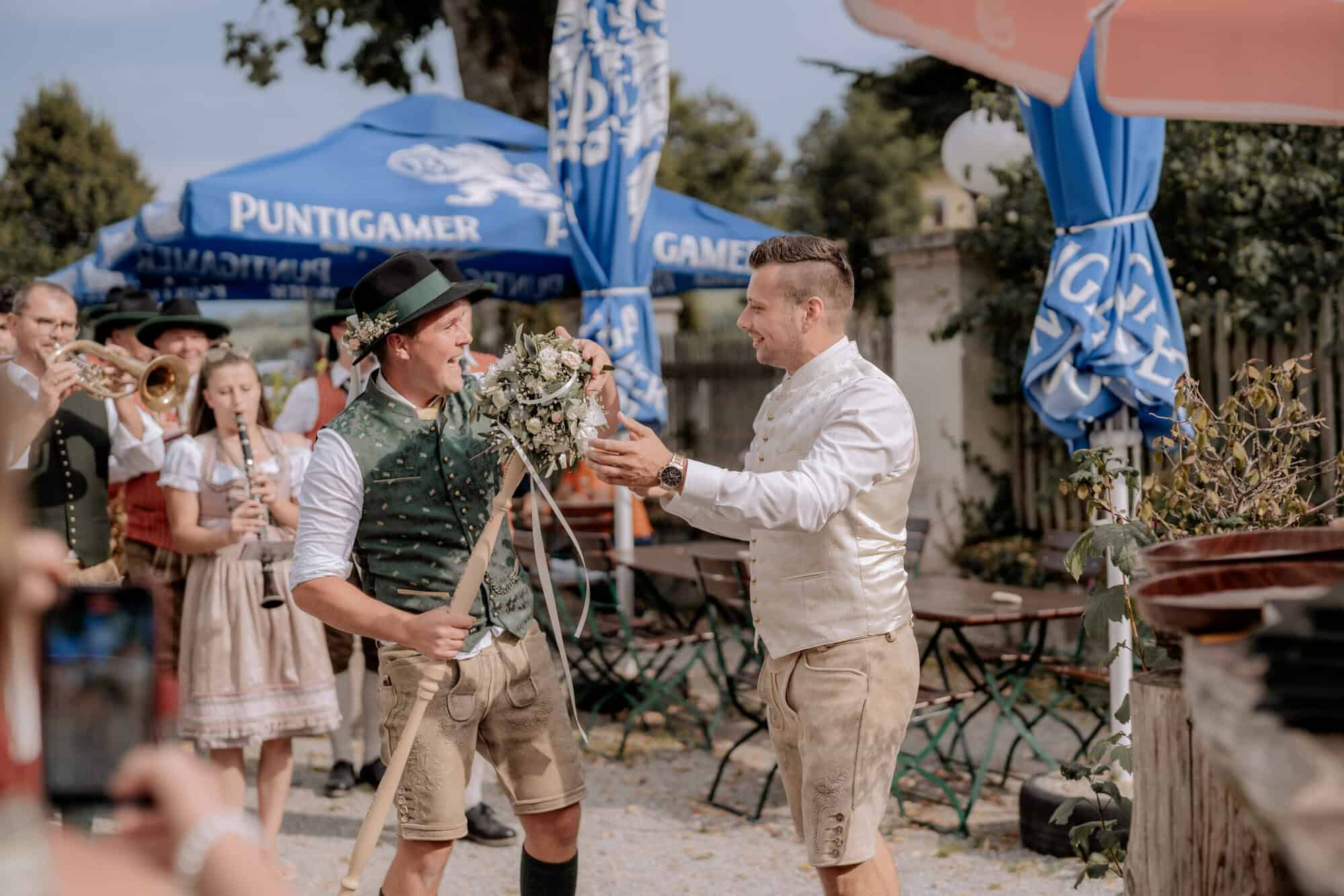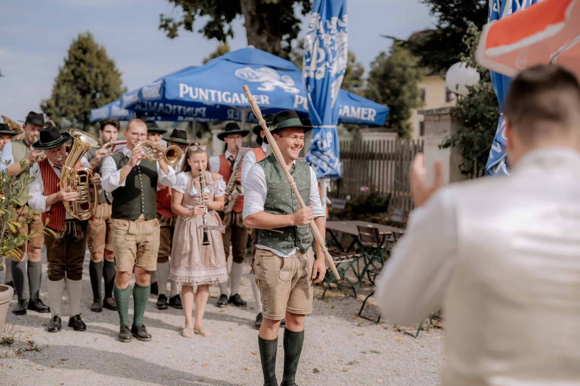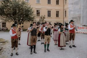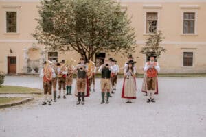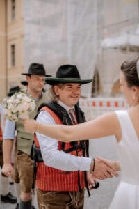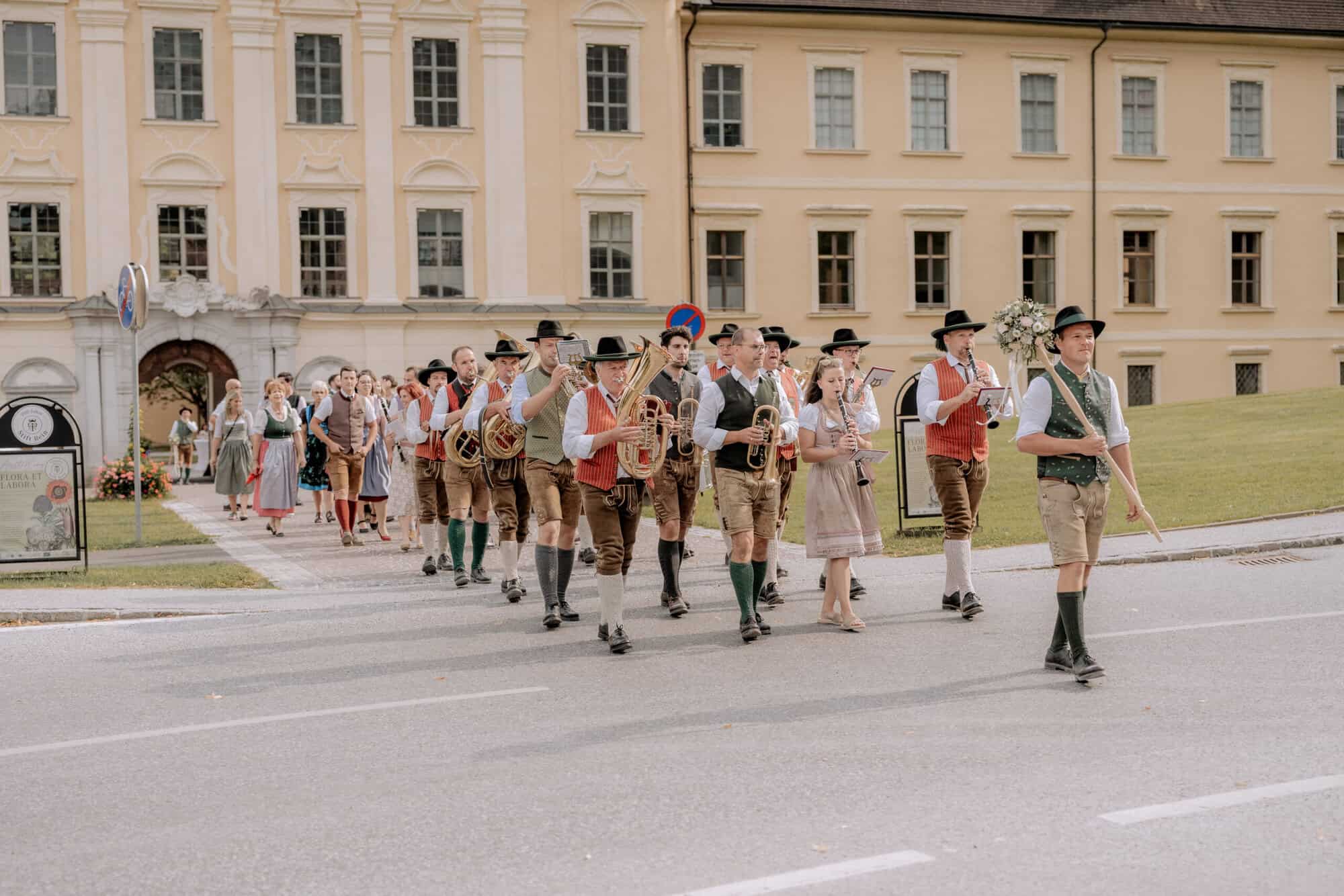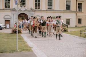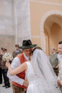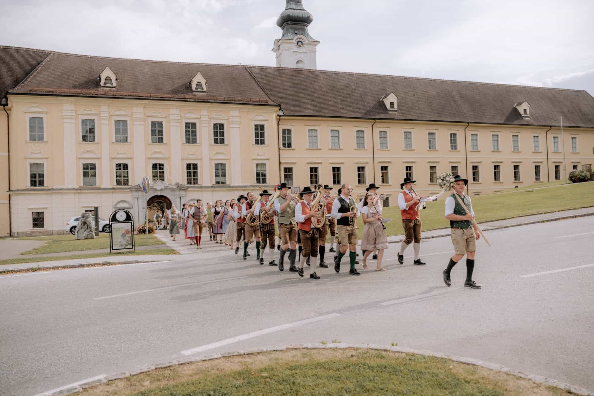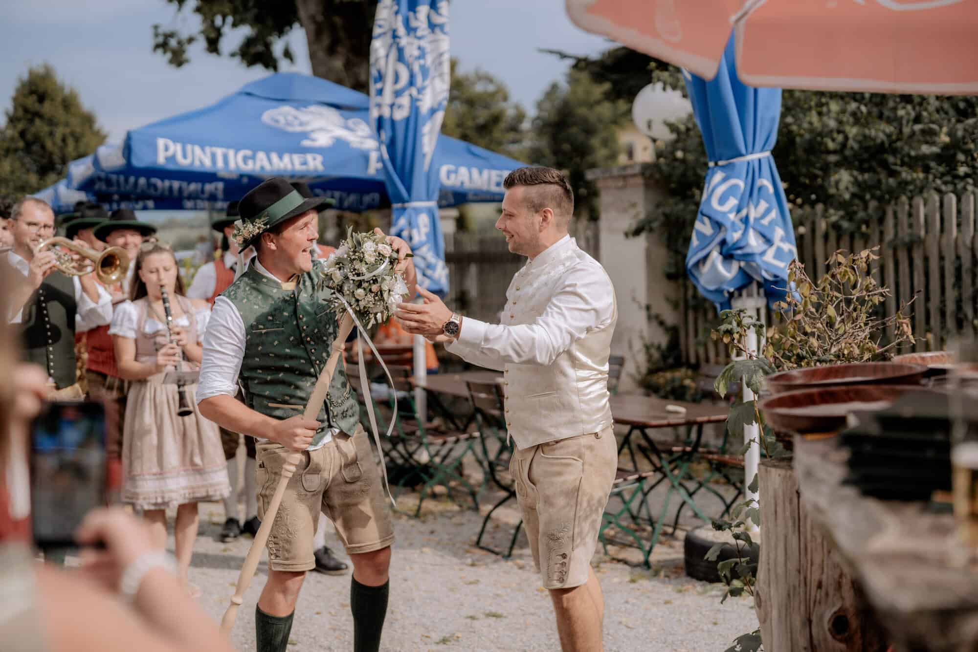 Am 16. August 2025 gaben sich Elisabeth und Mario in der Stiftskirche Rein das Jawort. Mario ist seit vielen Jahren aktiver Trompeter der Marktmusikkapelle sowie in der Administration engagiert. Zu Ehren des Brautpaares spielte die MMK vor der Kirche auf und gratulierte musikalisch zu diesem besonderen Anlass. Beim Abmarsch zeigte sich, dass unser Stabführer auch mit einem Brautstrauß sehr gut den Takt angeben kann. Wir wünschen Elisabeth und Mario alles erdenklich Gute für ihre gemeinsame Zukunft!