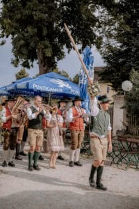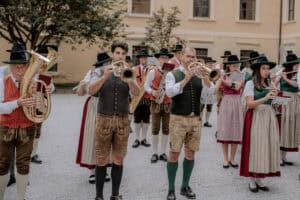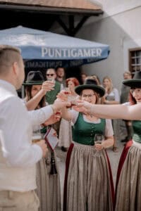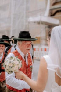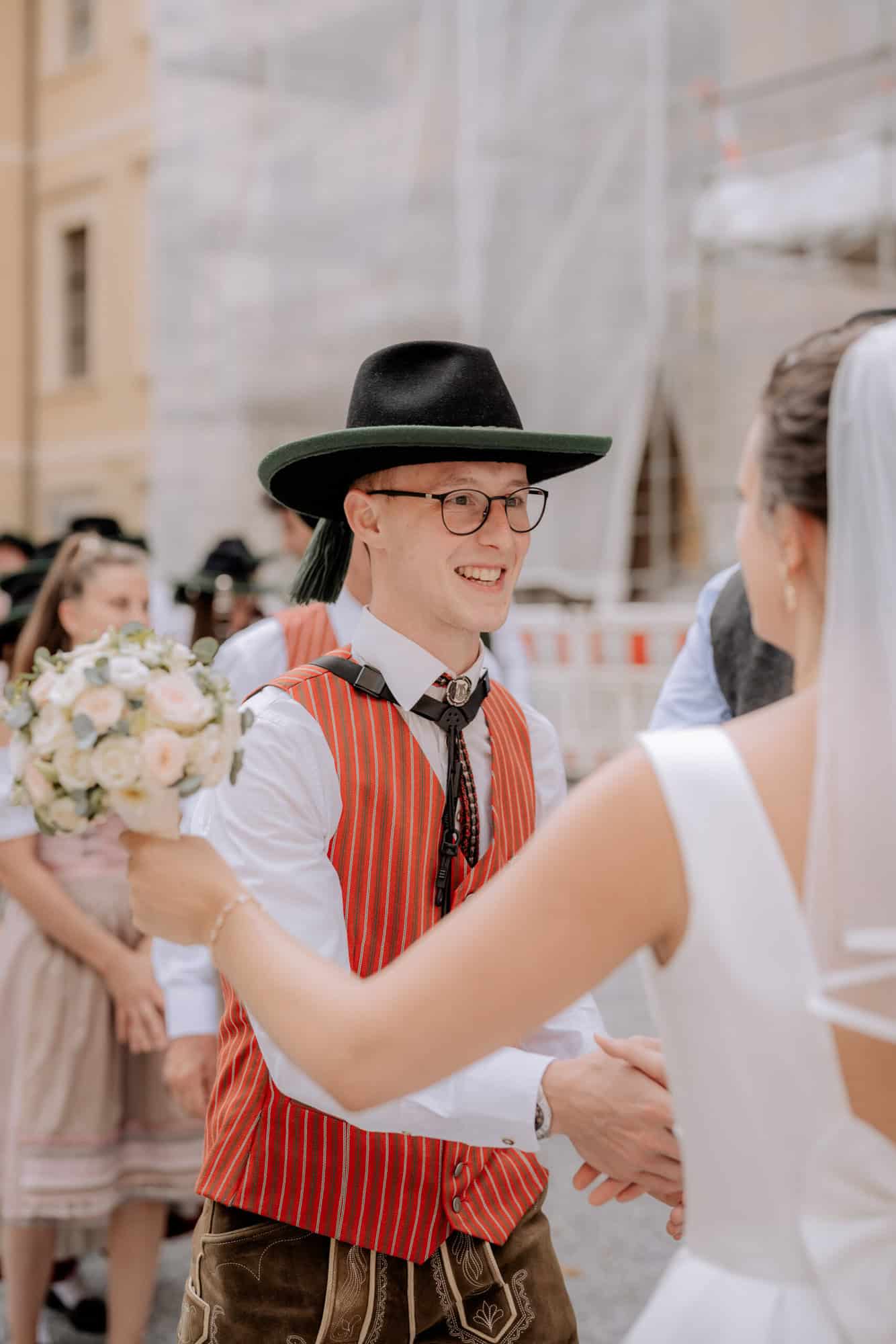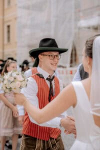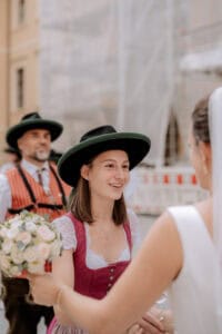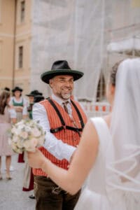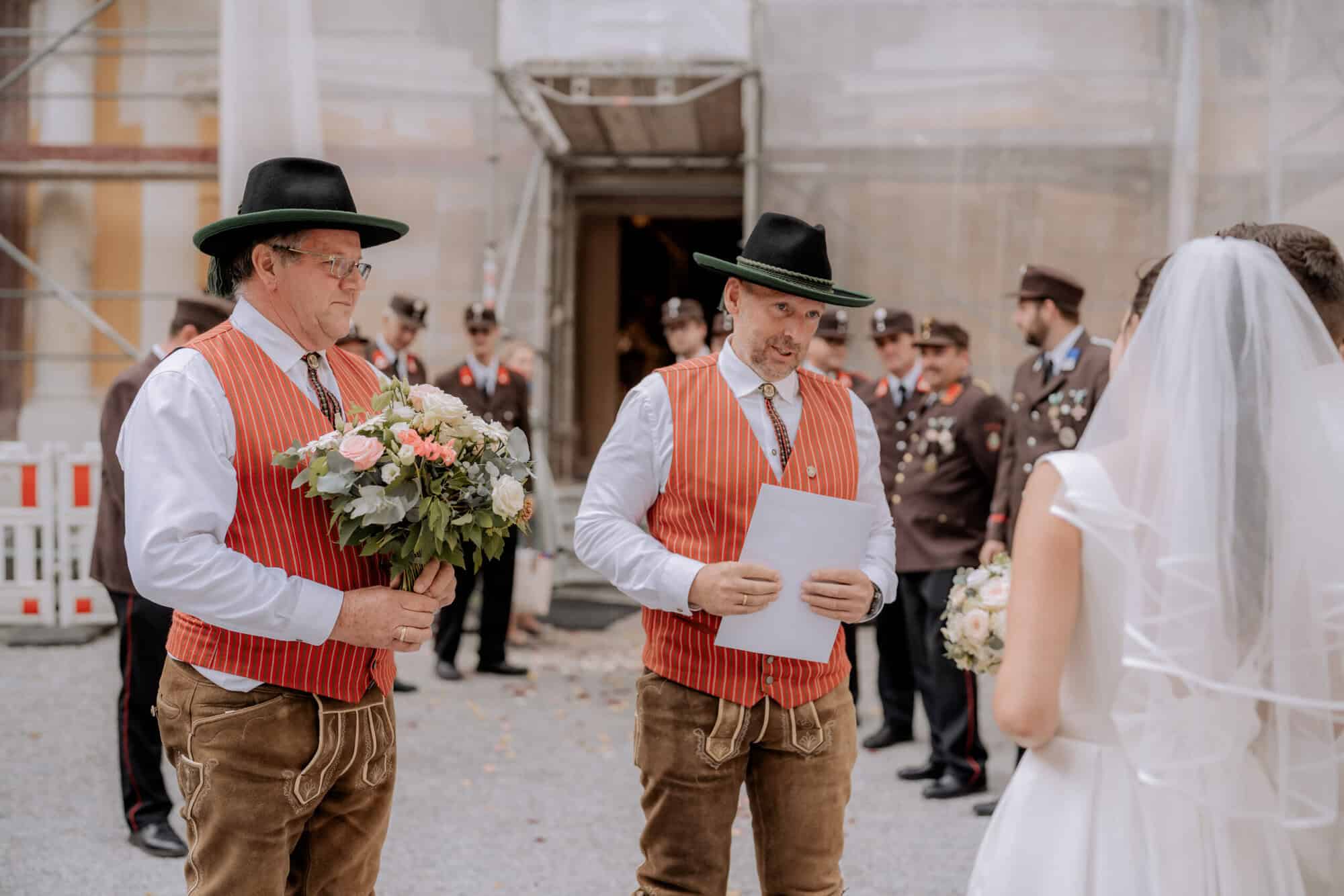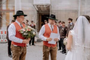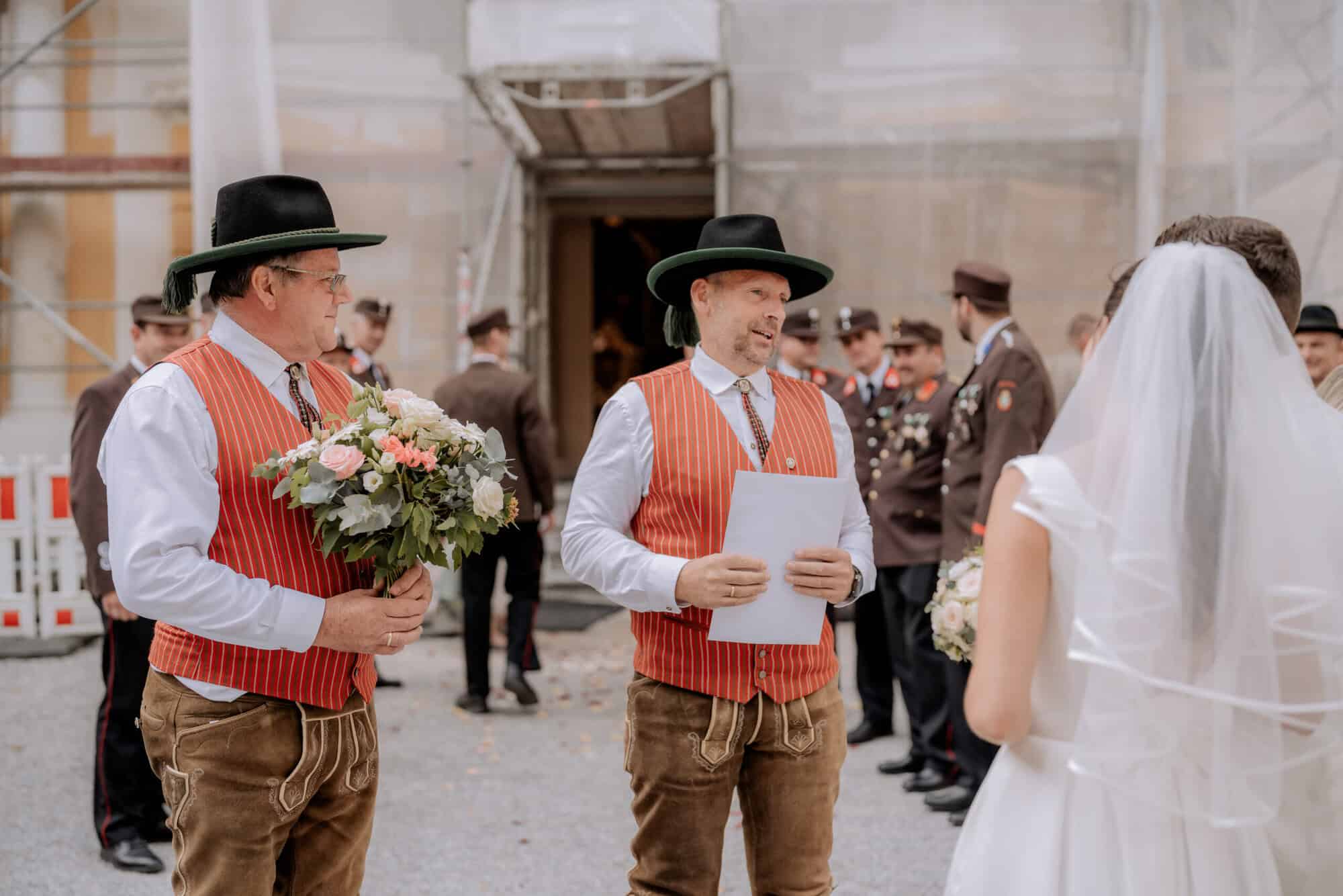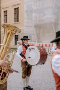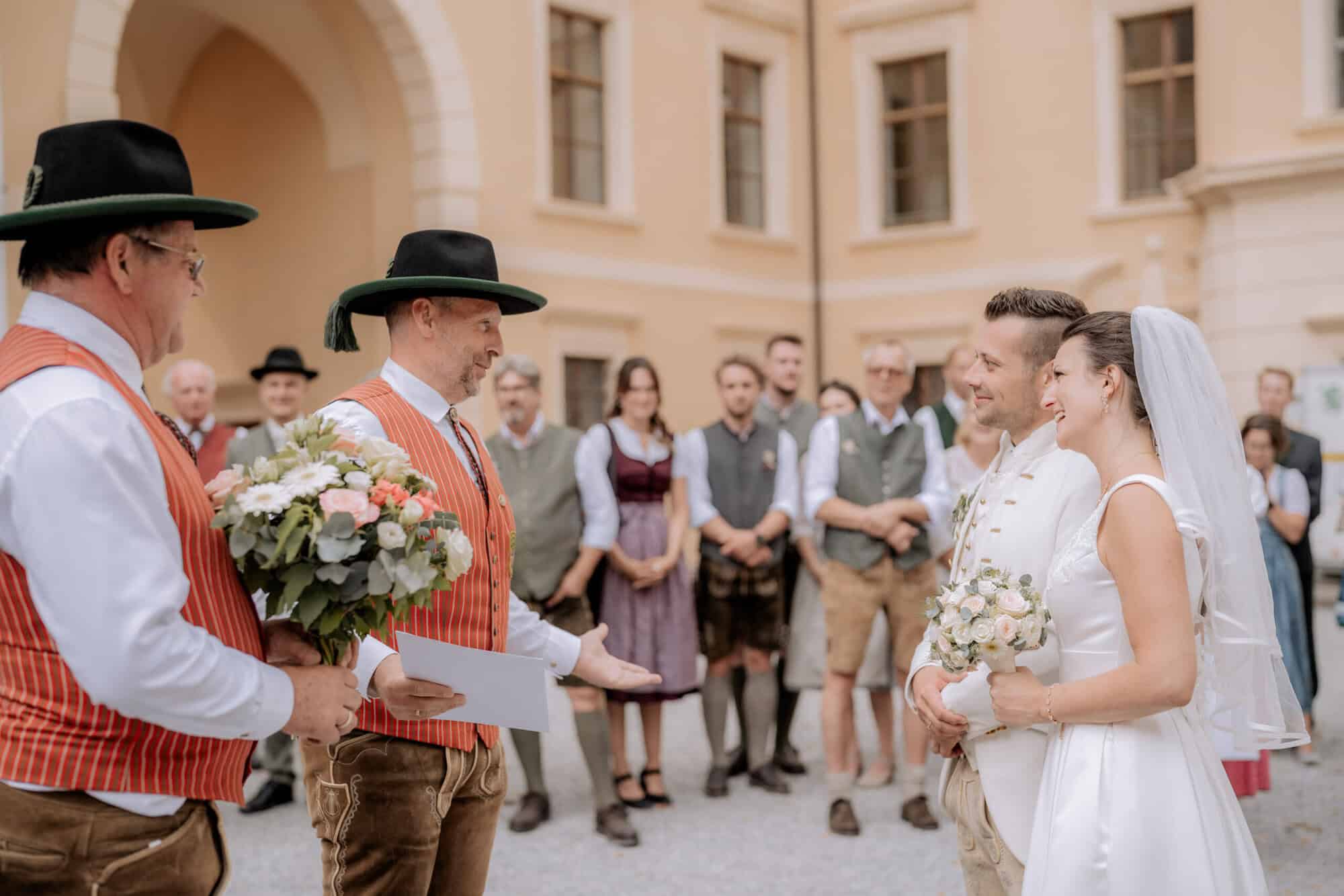 Am 16. August 2025 gaben sich Elisabeth und Mario in der Stiftskirche Rein das Jawort. Mario ist seit vielen Jahren aktiver Trompeter der Marktmusikkapelle sowie in der Administration engagiert. Zu Ehren des Brautpaares spielte die MMK vor der Kirche auf und gratulierte musikalisch zu diesem besonderen Anlass. Beim Abmarsch zeigte sich, dass unser Stabführer auch mit einem Brautstrauß sehr gut den Takt angeben kann. Wir wünschen Elisabeth und Mario alles erdenklich Gute für ihre gemeinsame Zukunft!