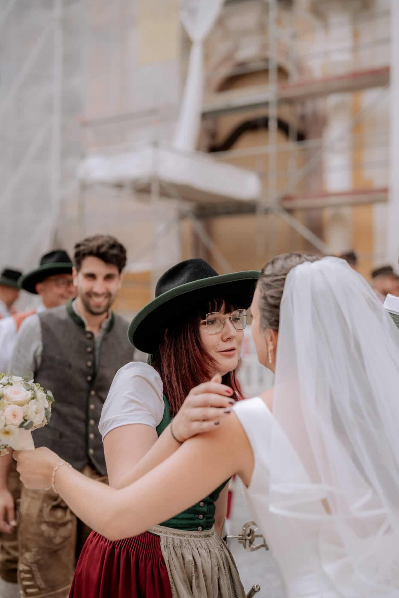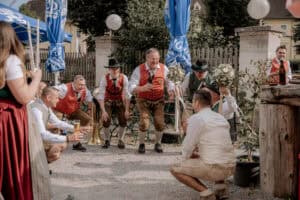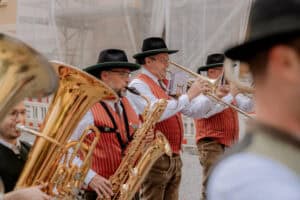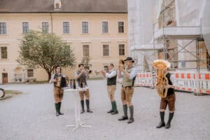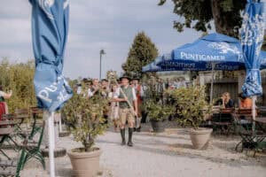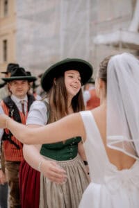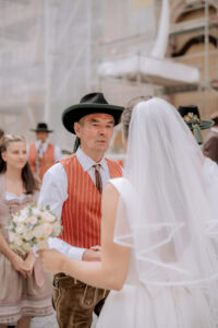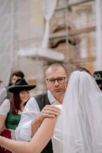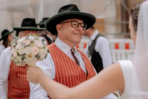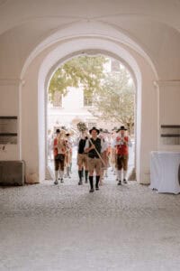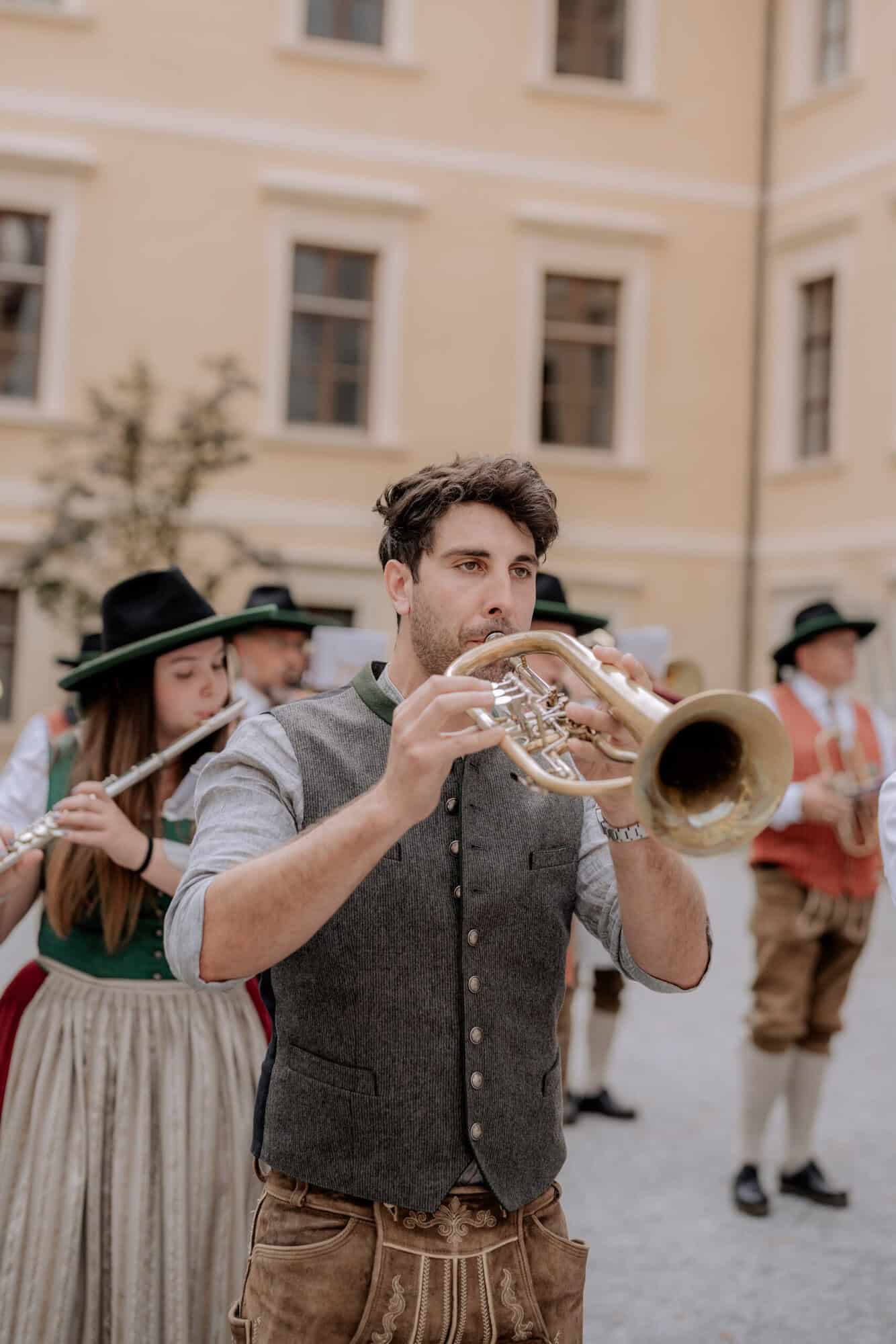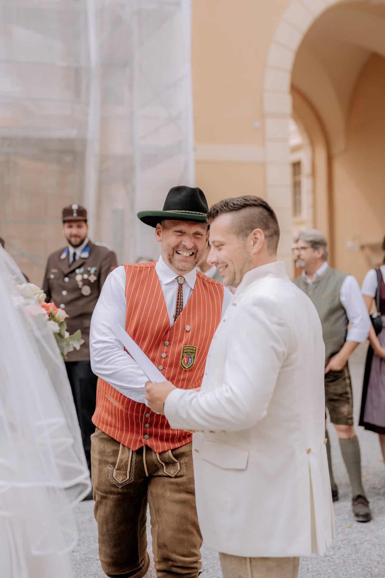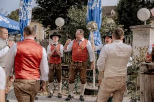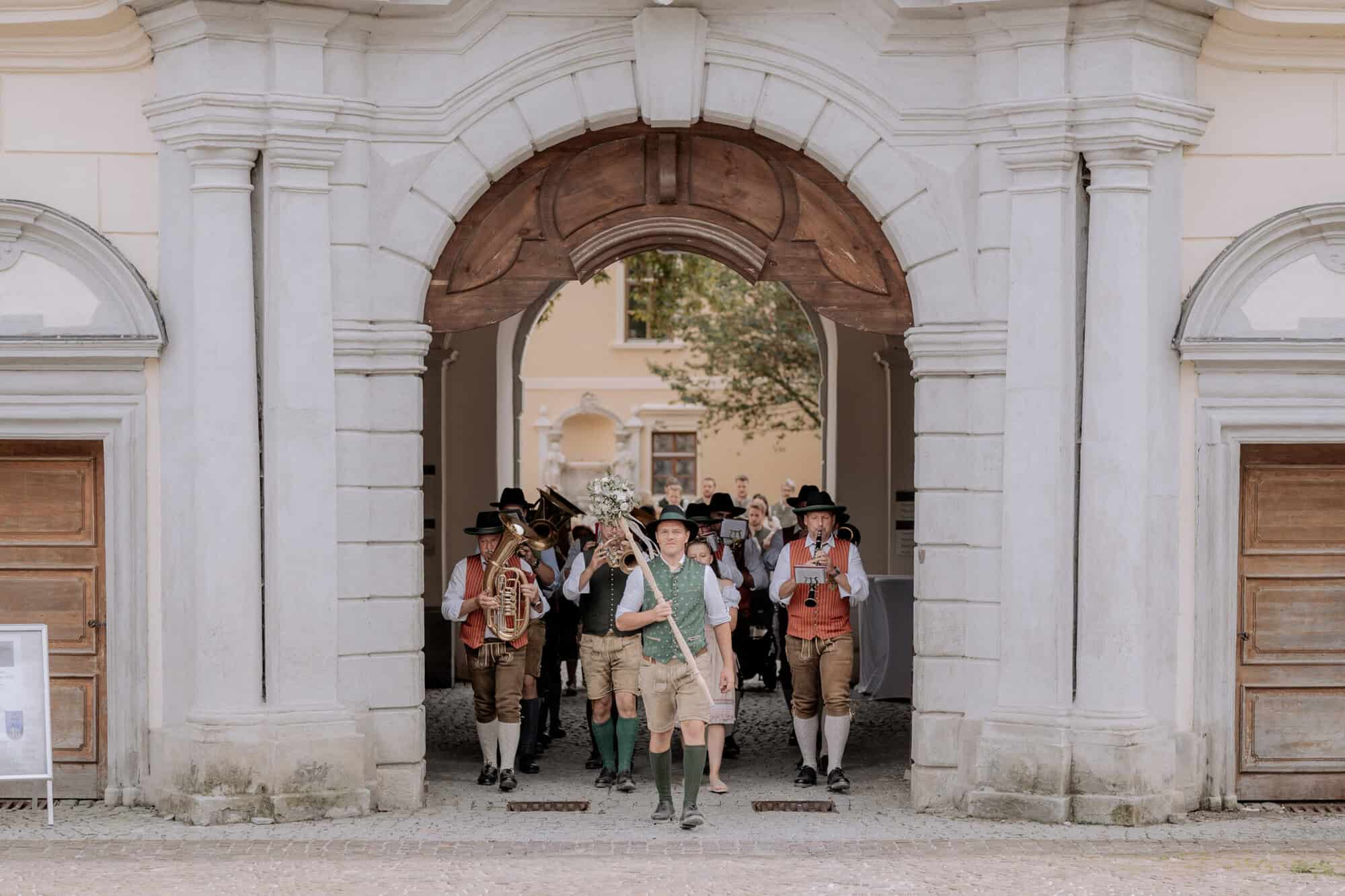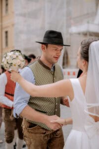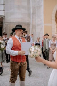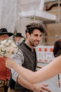Am 16. August 2025 gaben sich Elisabeth und Mario in der Stiftskirche Rein das Jawort. Mario ist seit vielen Jahren aktiver Trompeter der Marktmusikkapelle sowie in der Administration engagiert. Zu Ehren des Brautpaares spielte die MMK vor der Kirche auf und gratulierte musikalisch zu diesem besonderen Anlass. Beim Abmarsch zeigte sich, dass unser Stabführer auch mit einem Brautstrauß sehr gut den Takt angeben kann. Wir wünschen Elisabeth und Mario alles erdenklich Gute für ihre gemeinsame Zukunft!