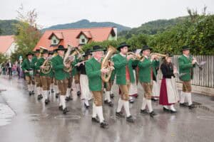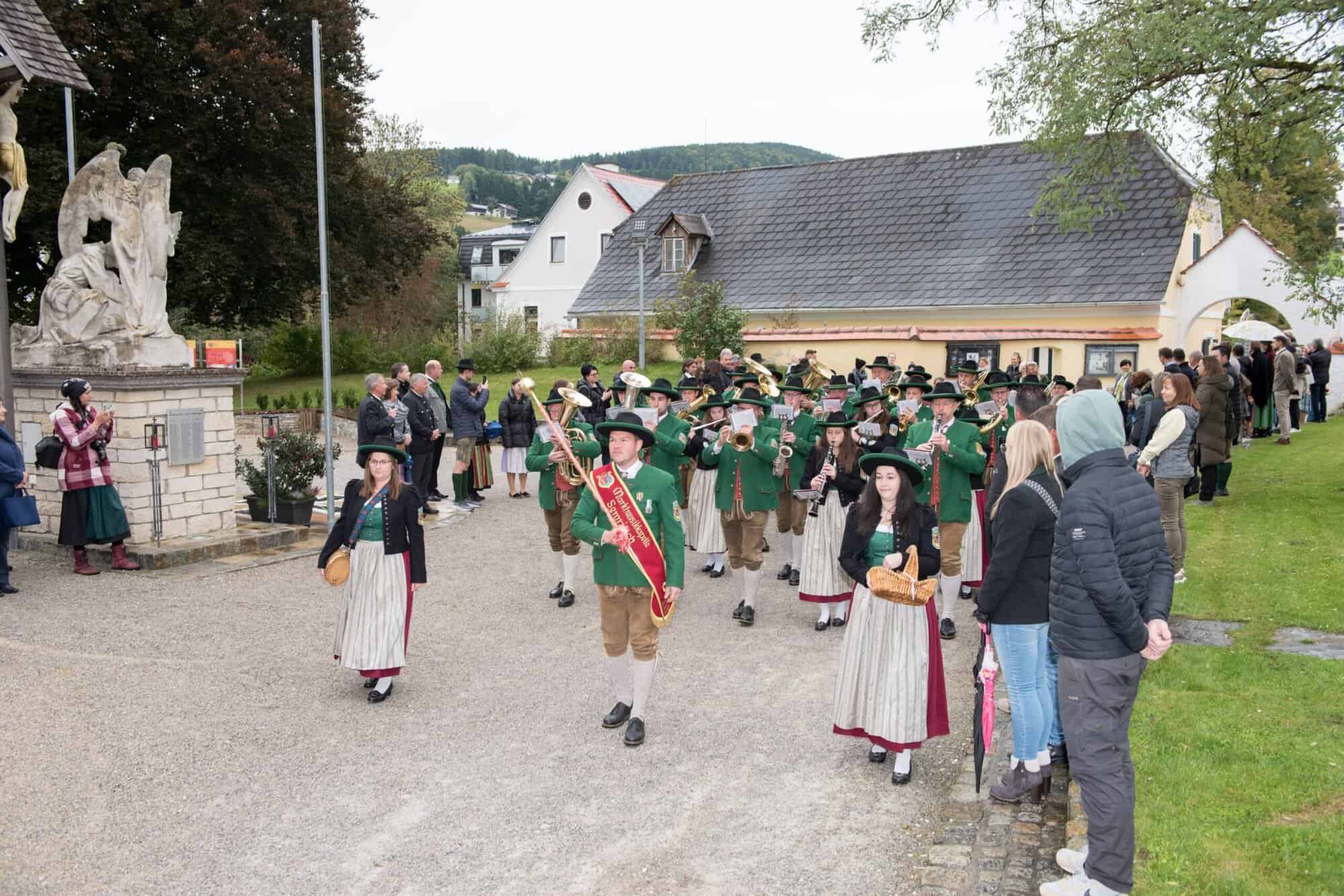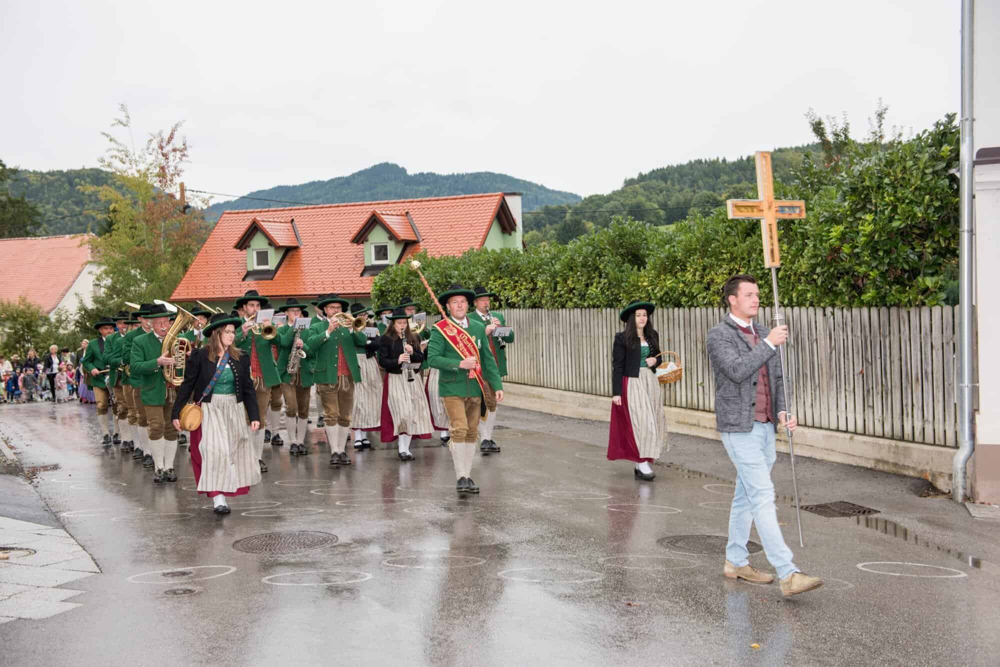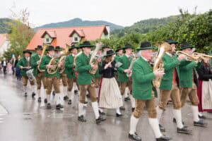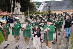 Am Sonntag, 05.10.2025, fand in Semriach der Erntedankumzug statt. Die MMK unter der Leitung von Stabführer Christian Krinner führte den Umzug vom Pfarrhof über den Marktplatz zum Kirchenhauptportal musikalisch an.
