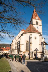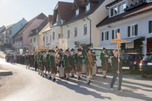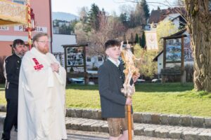 In Semriach beginnt der Ostersonntag traditionell mit der Osterprozession über den Marktplatz, welche auch heuer von der MMK Semriach unter der Leitung von Stabführer Kilian Raffer musikalisch angeführt wurde. Anschließend zelebrierte Bruder Andreas, unterstützt von seinem Gast aus der Ukraine, Bruder Alexander, die heilige Messe zum Ostersonntag.