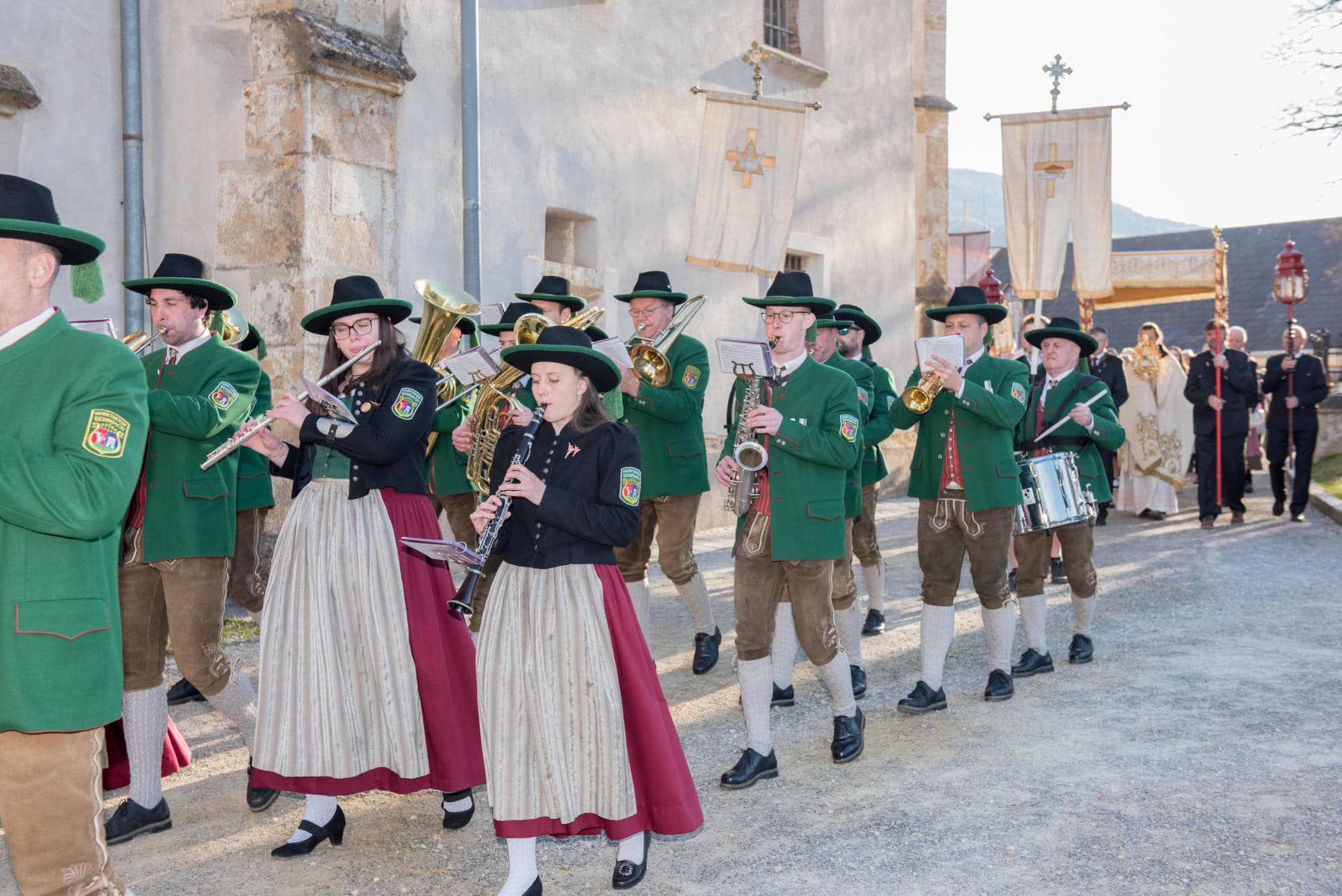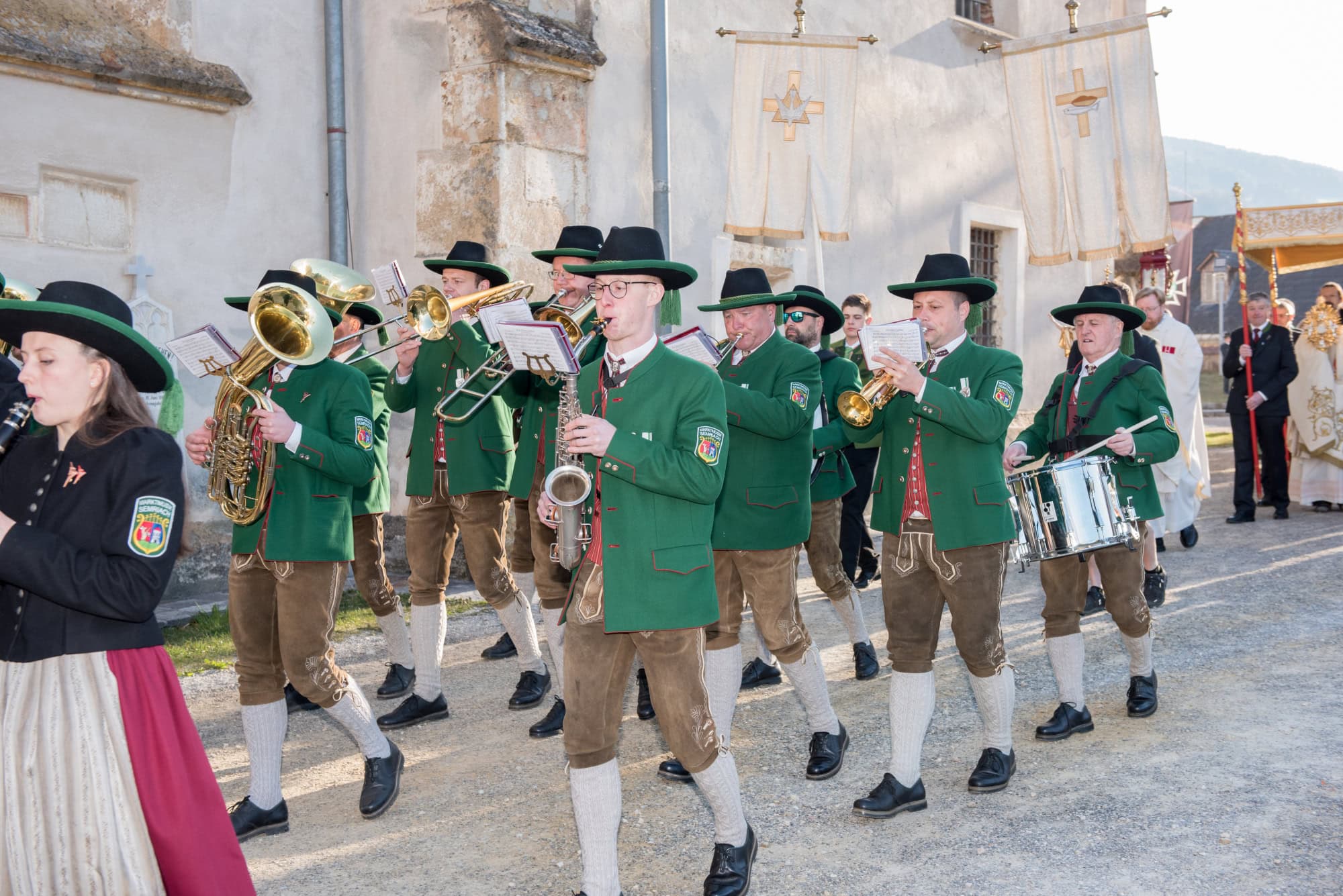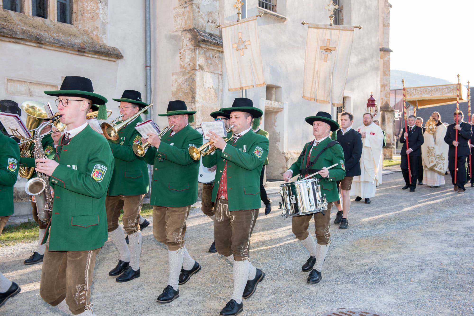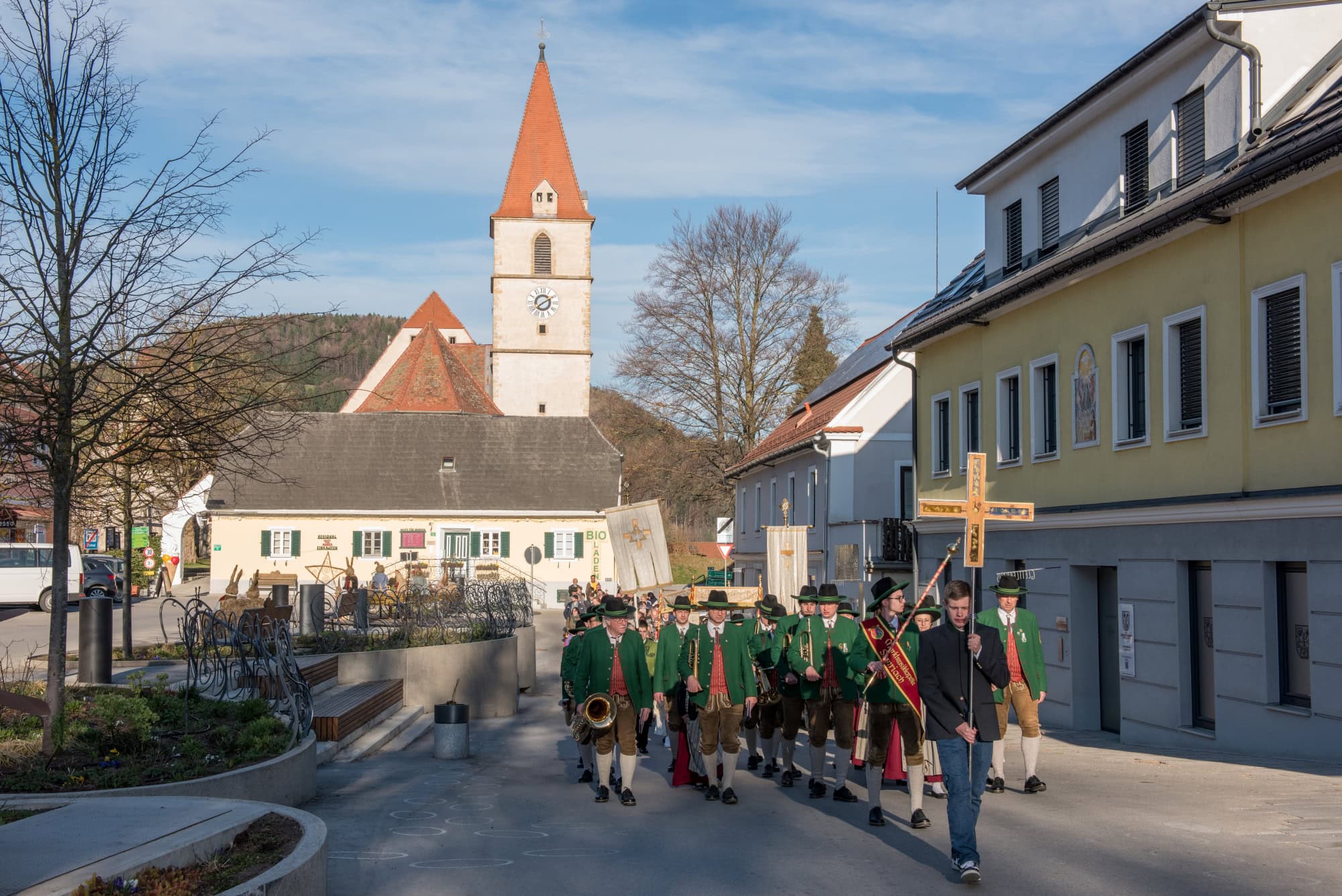 In Semriach beginnt der Ostersonntag traditionell mit der Osterprozession über den Marktplatz, welche auch heuer von der MMK Semriach unter der Leitung von Stabführer Kilian Raffer musikalisch angeführt wurde. Anschließend zelebrierte Bruder Andreas, unterstützt von seinem Gast aus der Ukraine, Bruder Alexander, die heilige Messe zum Ostersonntag.