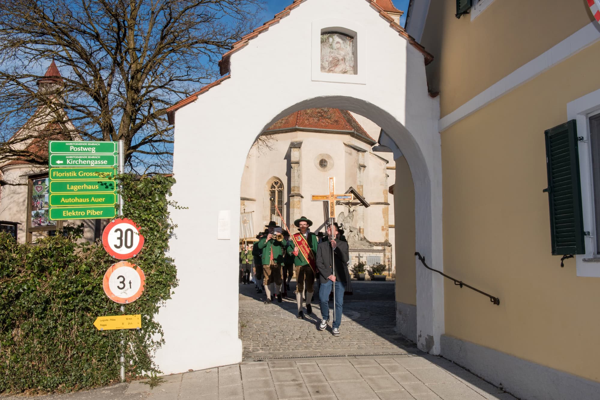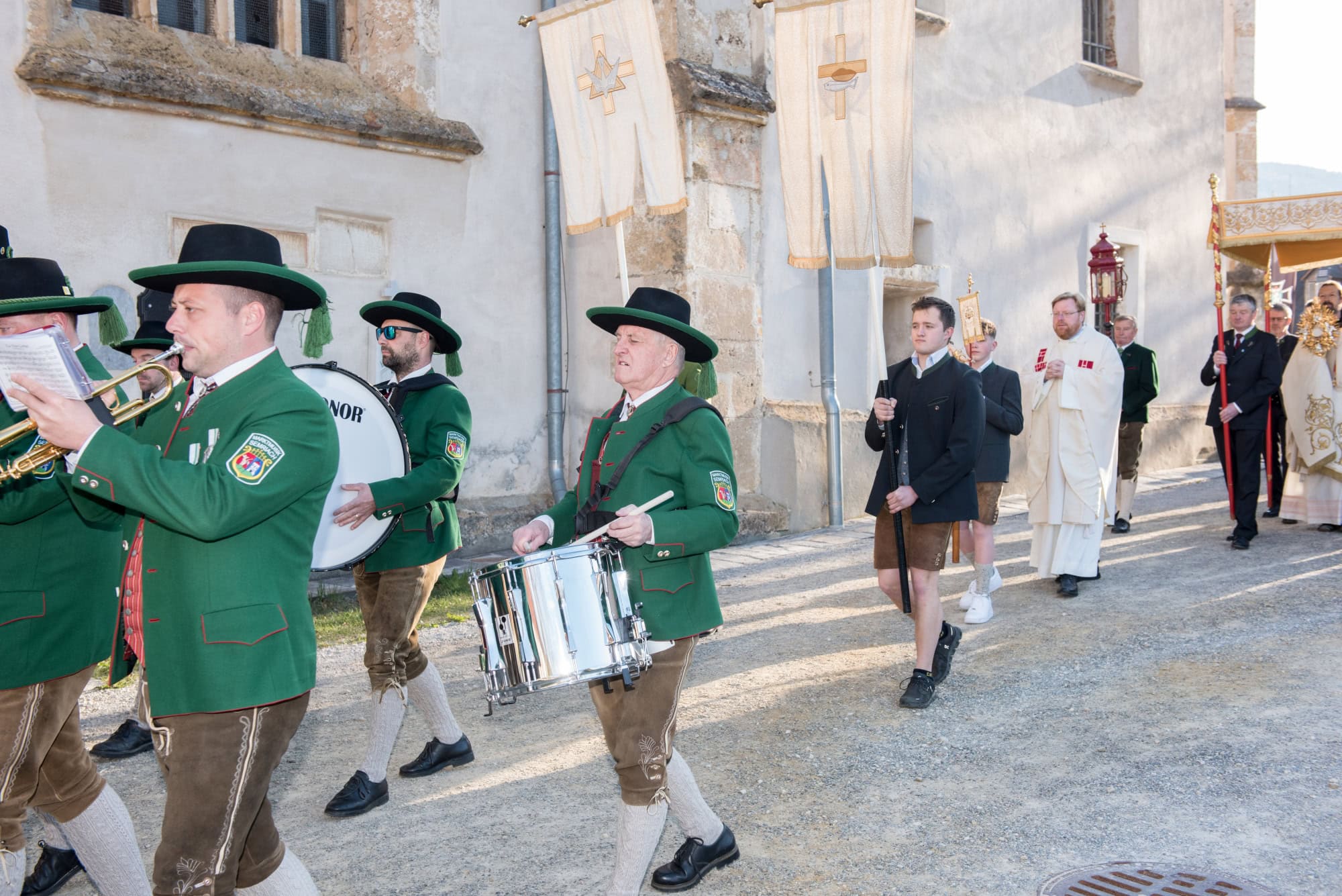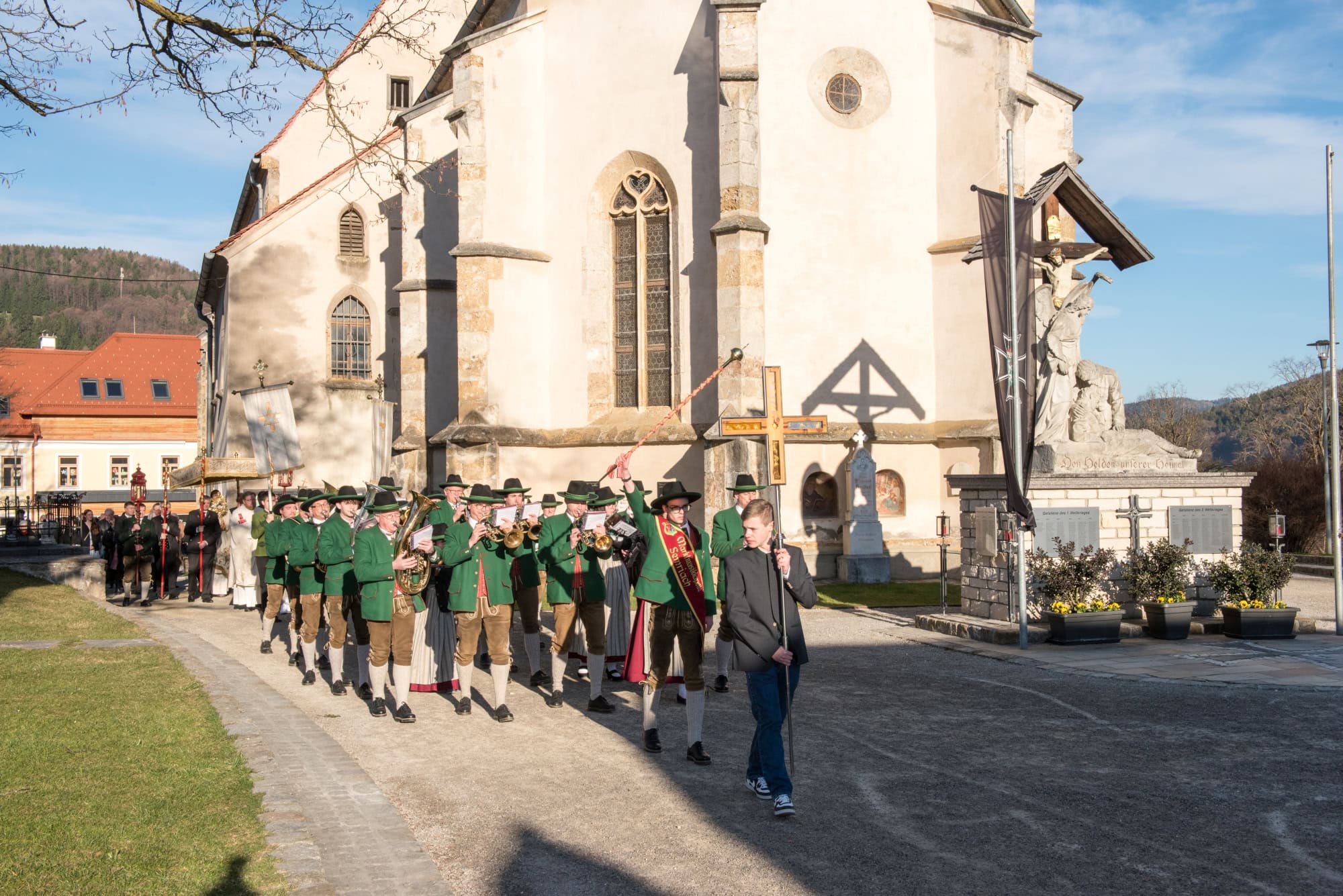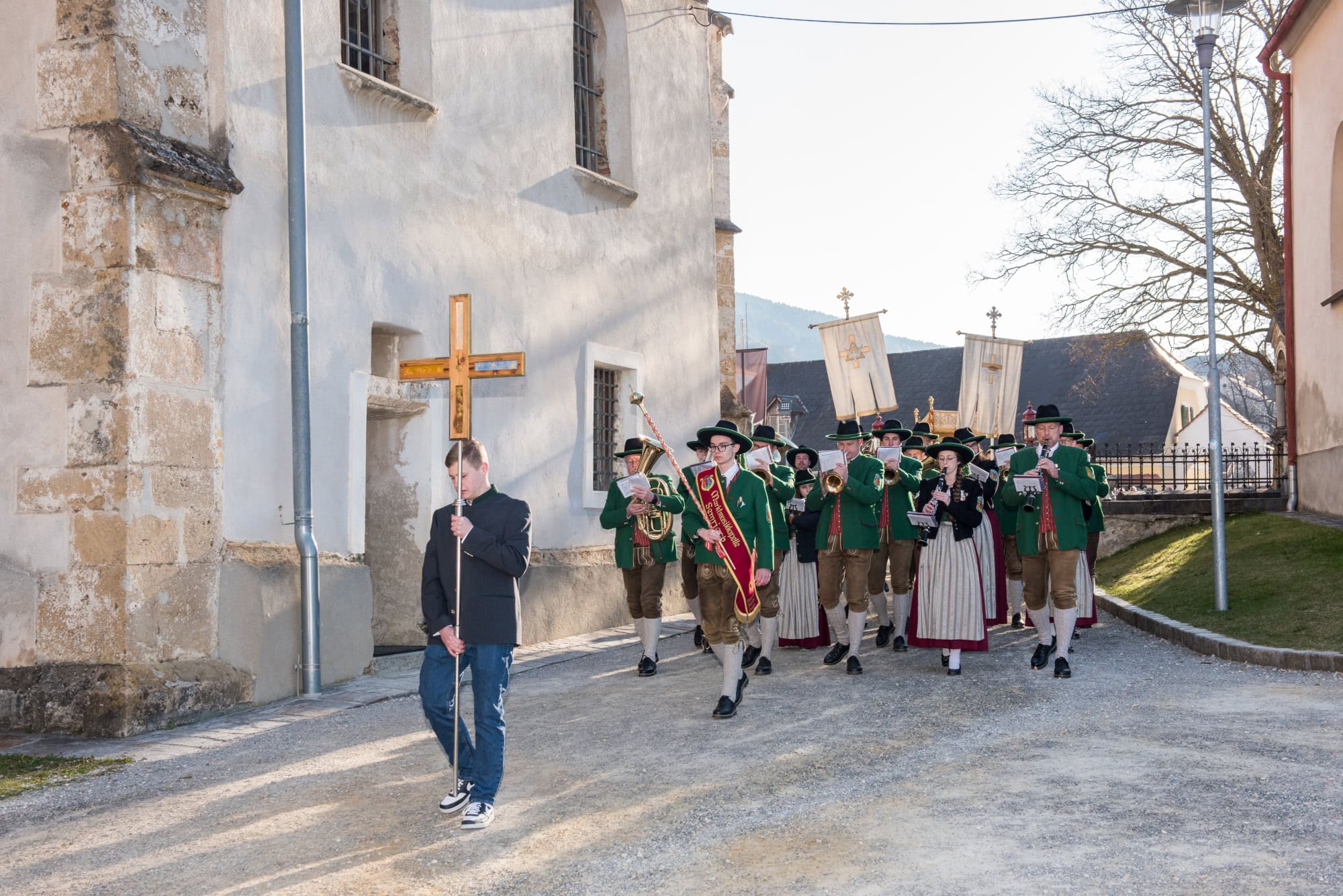 In Semriach beginnt der Ostersonntag traditionell mit der Osterprozession über den Marktplatz, welche auch heuer von der MMK Semriach unter der Leitung von Stabführer Kilian Raffer musikalisch angeführt wurde. Anschließend zelebrierte Bruder Andreas, unterstützt von seinem Gast aus der Ukraine, Bruder Alexander, die heilige Messe zum Ostersonntag.