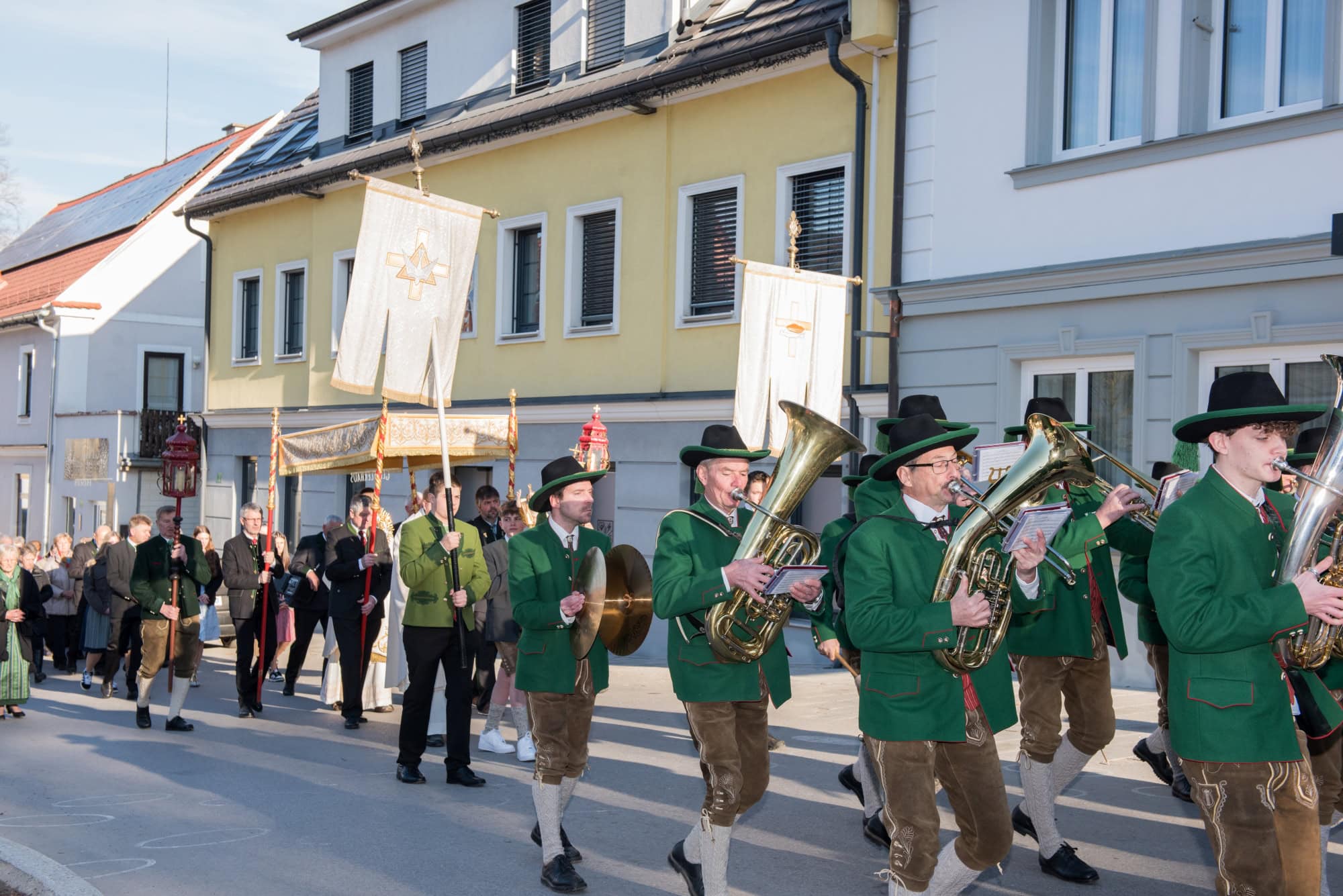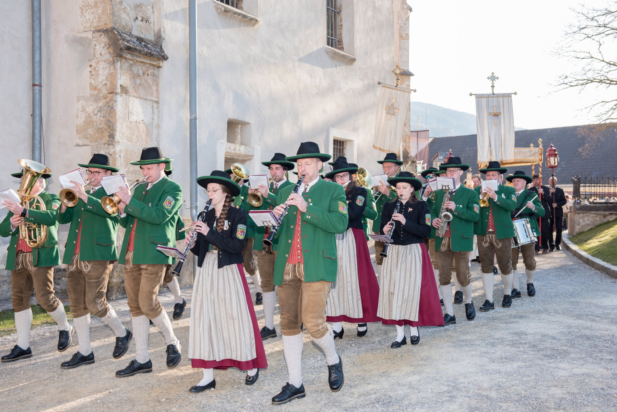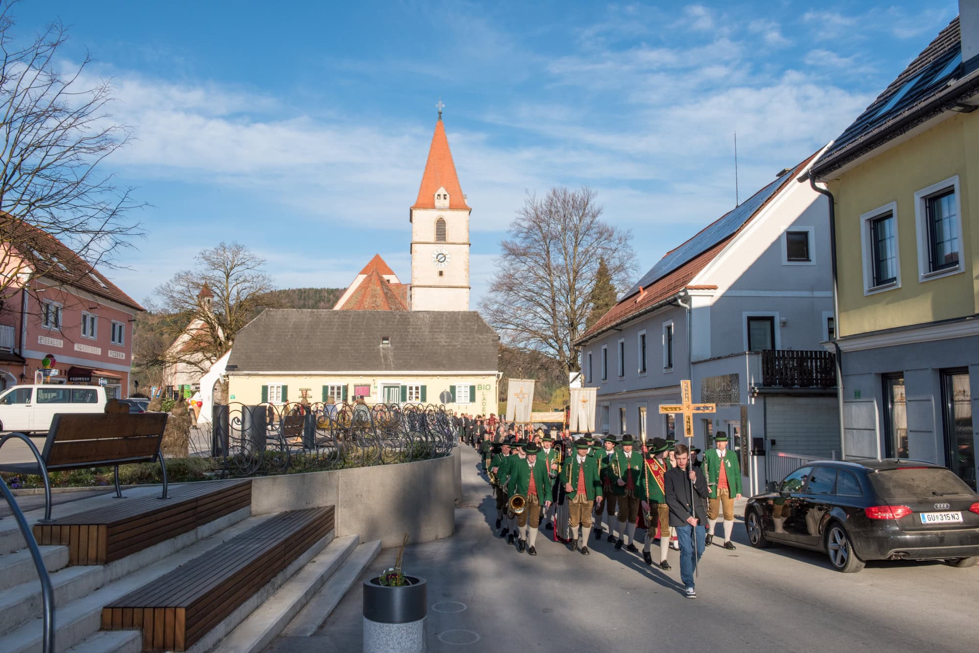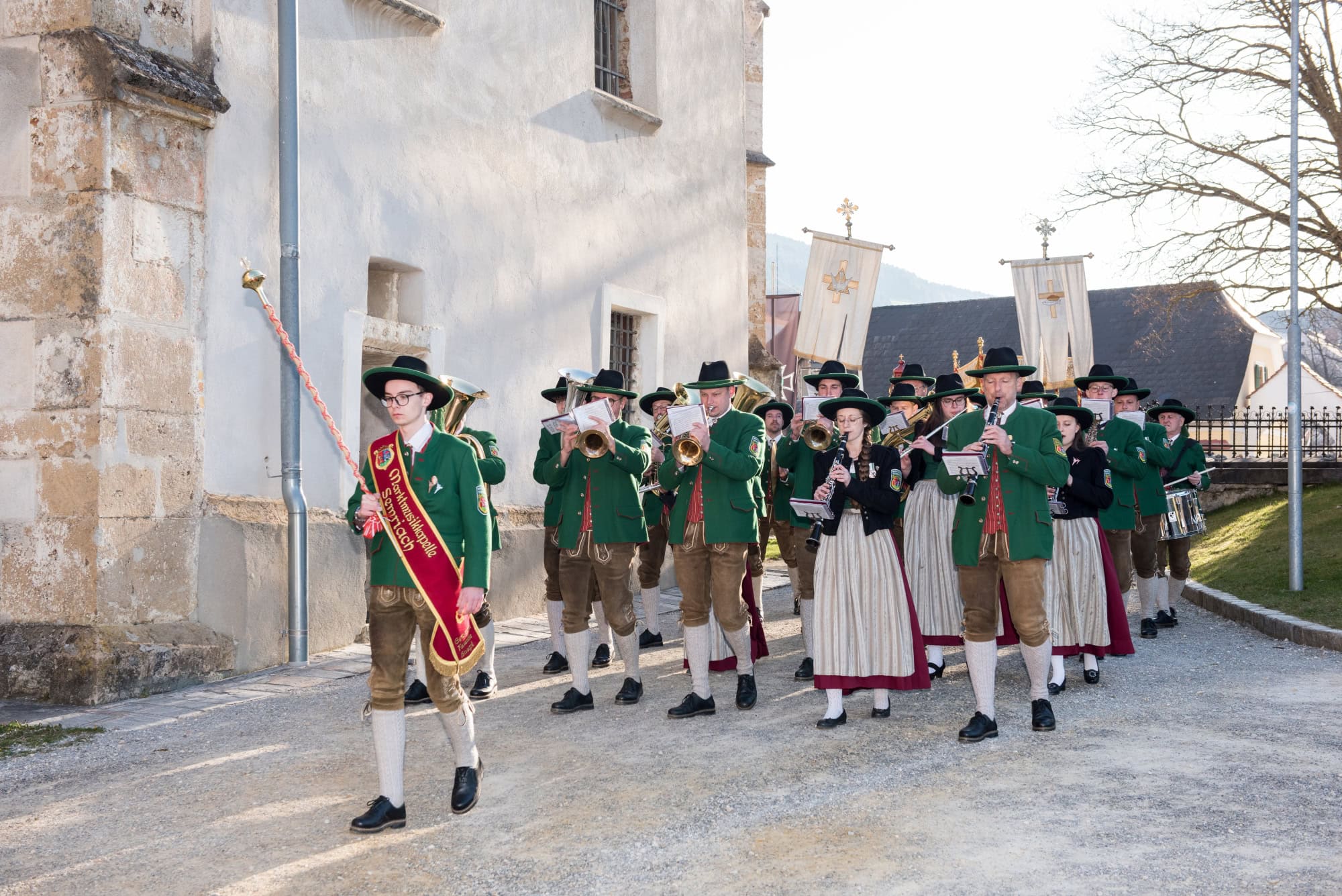In Semriach beginnt der Ostersonntag traditionell mit der Osterprozession über den Marktplatz, welche auch heuer von der MMK Semriach unter der Leitung von Stabführer Kilian Raffer musikalisch angeführt wurde. Anschließend zelebrierte Bruder Andreas, unterstützt von seinem Gast aus der Ukraine, Bruder Alexander, die heilige Messe zum Ostersonntag.
