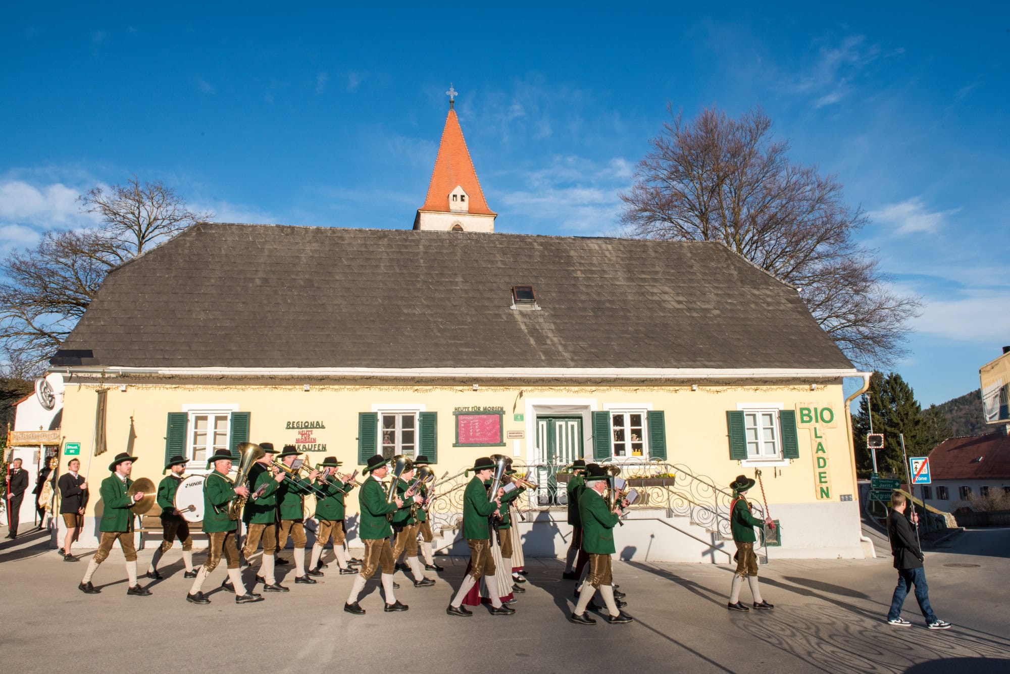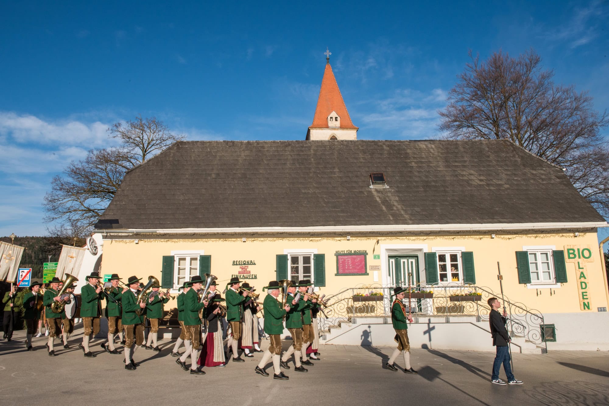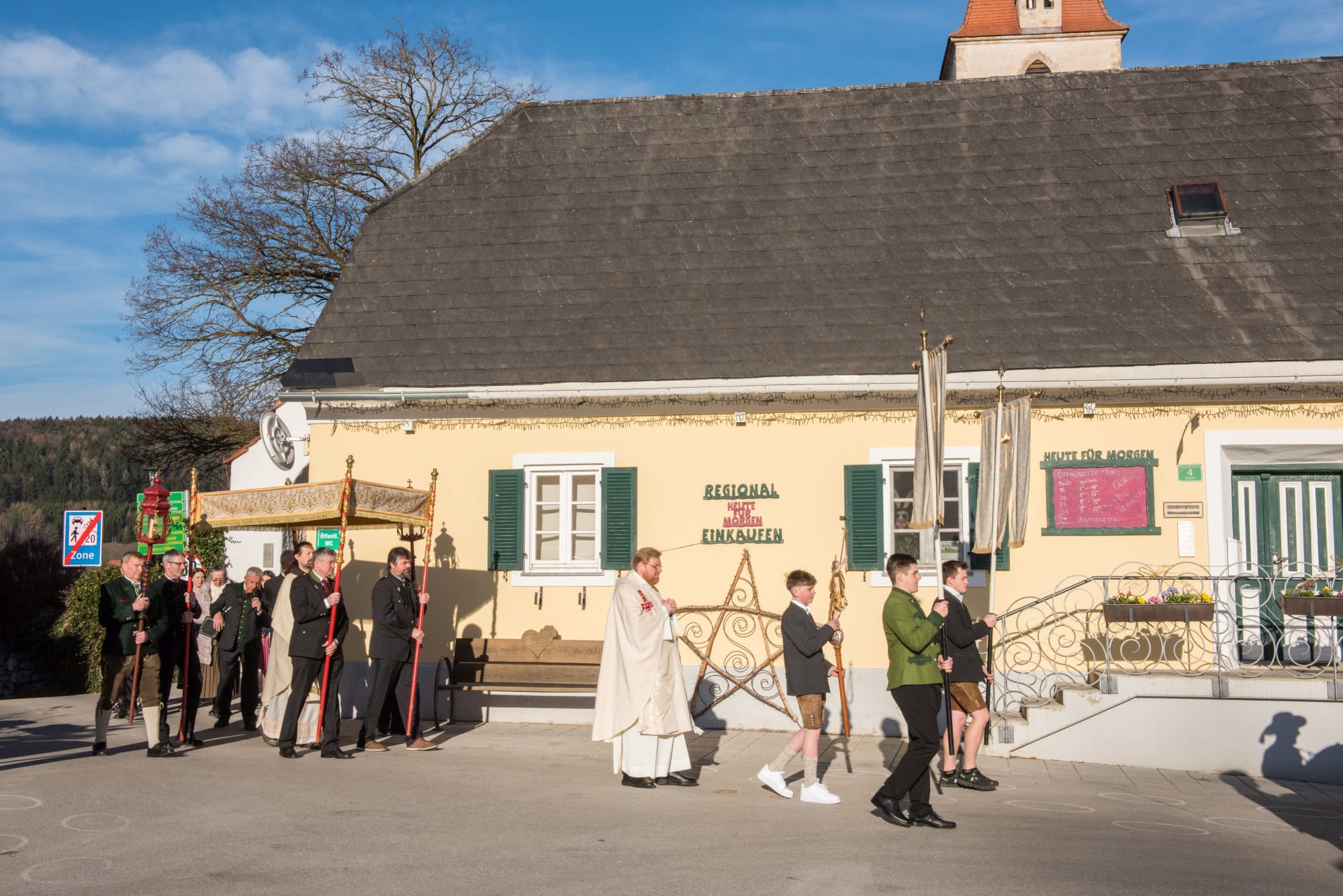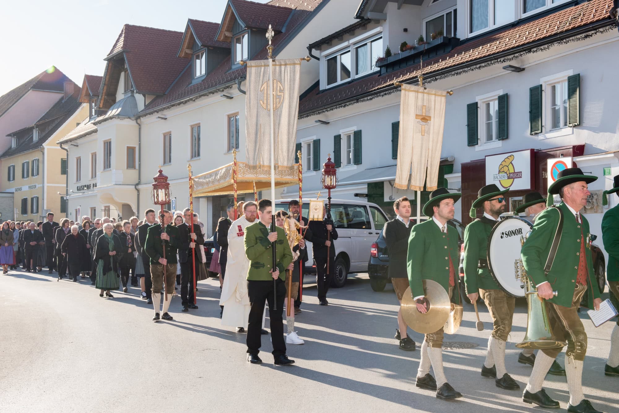 In Semriach beginnt der Ostersonntag traditionell mit der Osterprozession über den Marktplatz, welche auch heuer von der MMK Semriach unter der Leitung von Stabführer Kilian Raffer musikalisch angeführt wurde. Anschließend zelebrierte Bruder Andreas, unterstützt von seinem Gast aus der Ukraine, Bruder Alexander, die heilige Messe zum Ostersonntag.